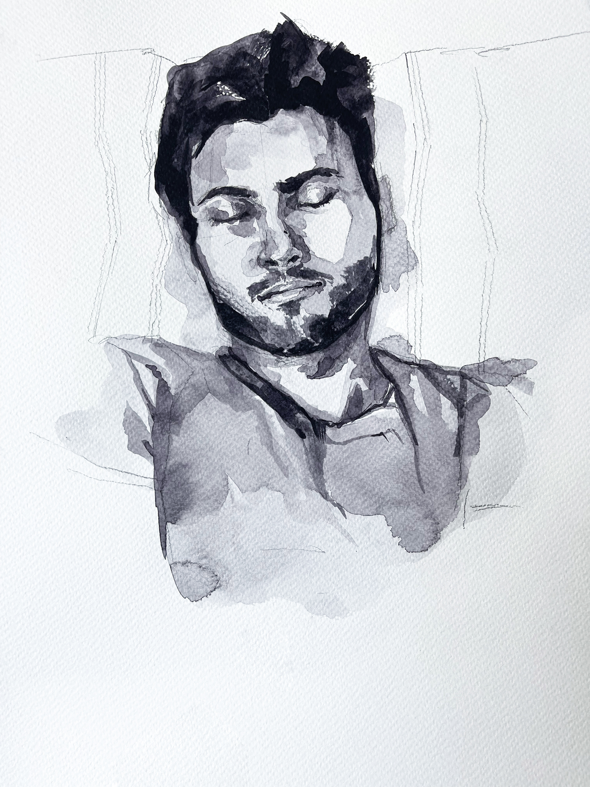 In these pencil and watercolor studies of goofy selfies I explore how analog drawings coalesce with front-camera photography to answer the pressing contemporary question: "Can selfies be a work of art?: