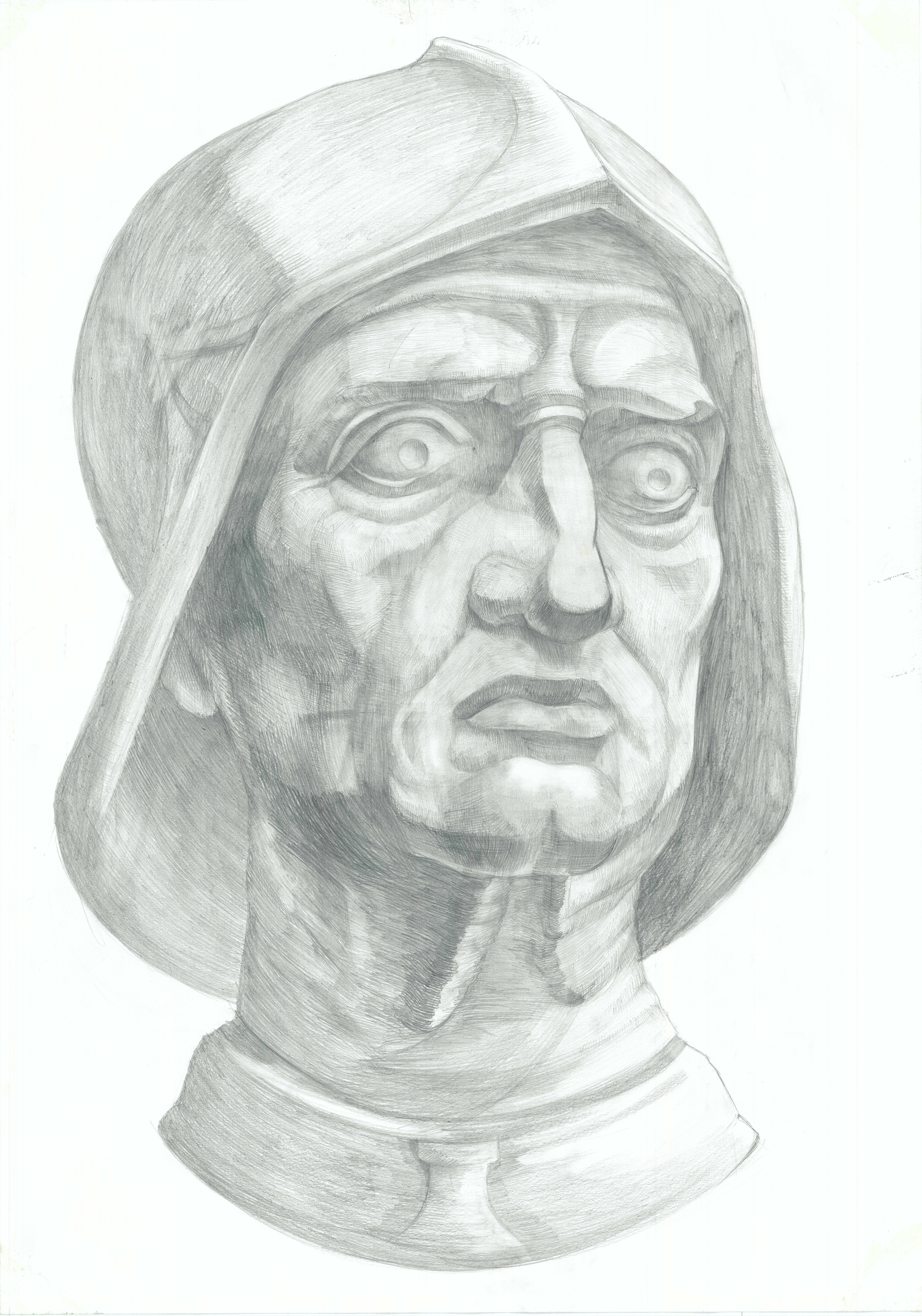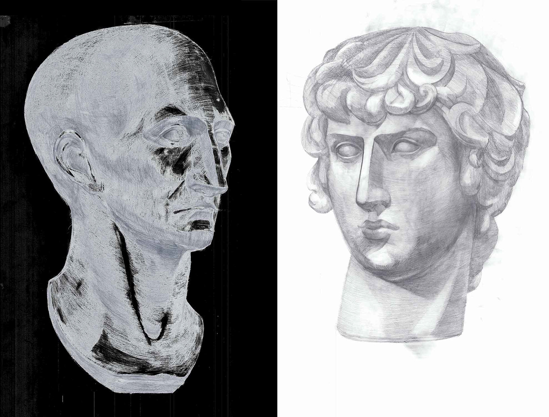 A technical exercise, these drawings captured plaster replica busts of classical and Renaissance sculptures. All drawings were made in pencil at the Stroganoff Academy of Art in Moscow in 2016.